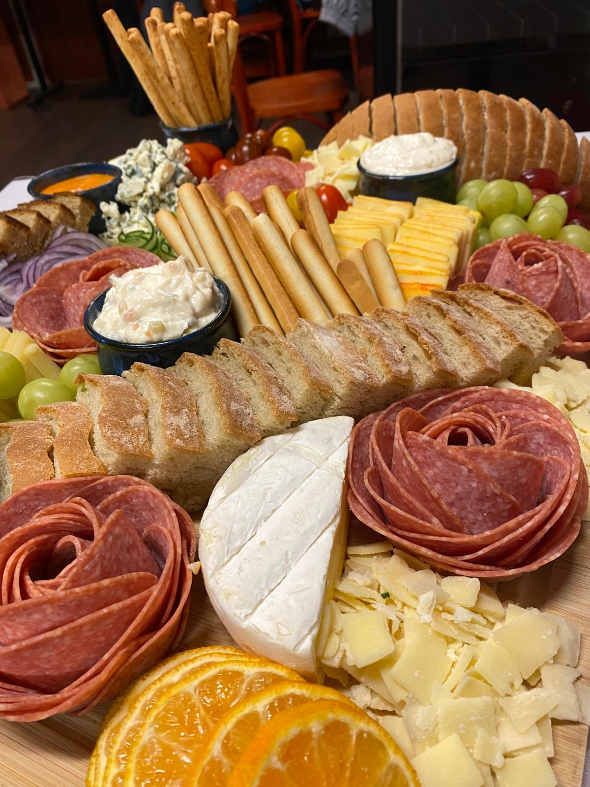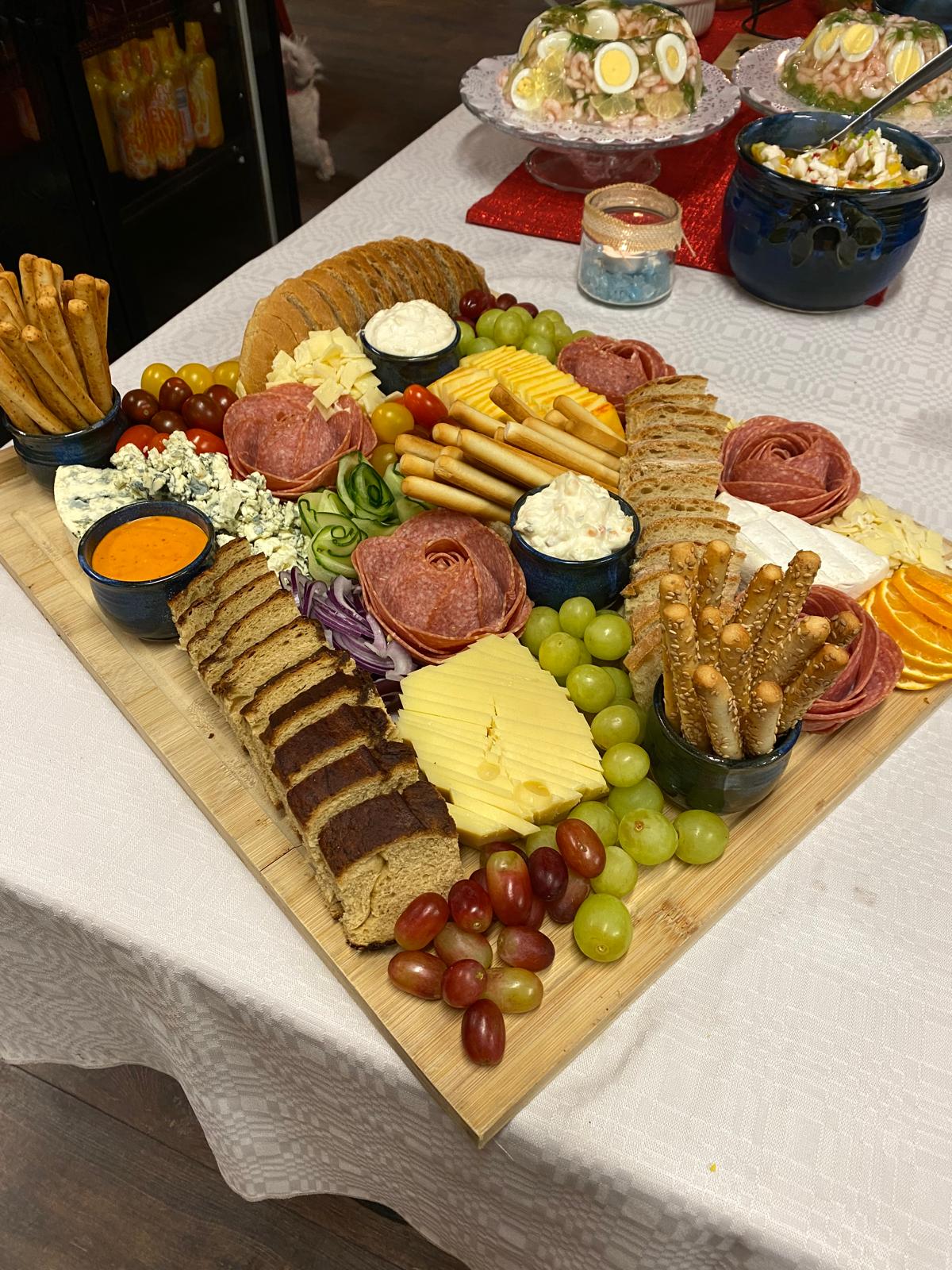 lihapullia, kurkkua, minitomaatteja, viinirypäleitä, juustoja ja mitä haluatte valita.
