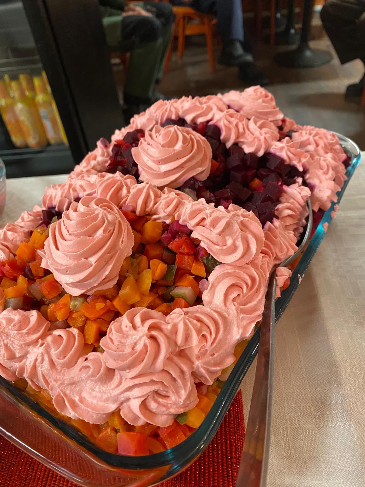 Voileipä kakku (lohi, kinkku, katkarapu).