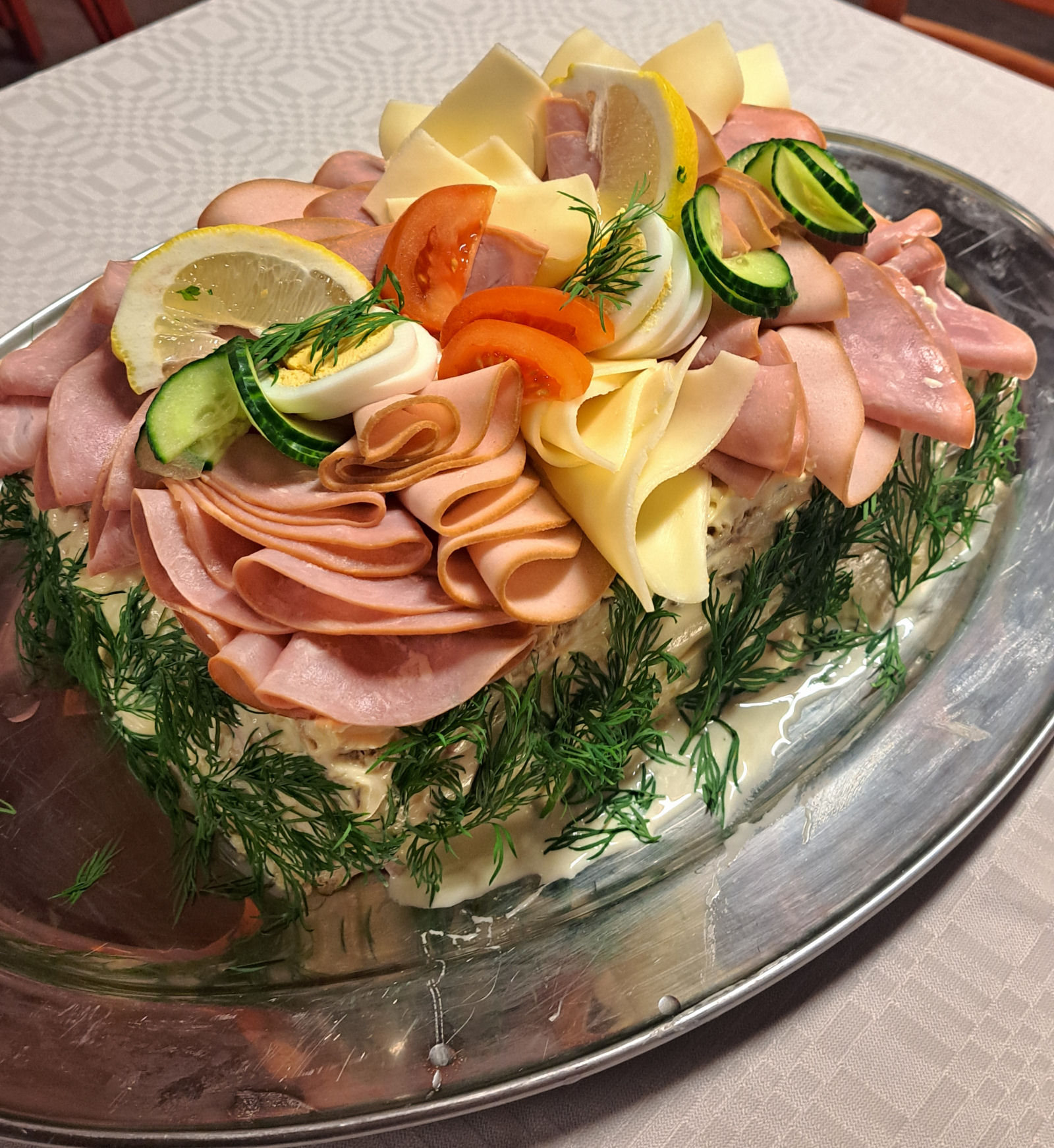 Voileipäpöytä talon tapaan (3 kpl/hlö)täytteet toiveiden mukaan.
